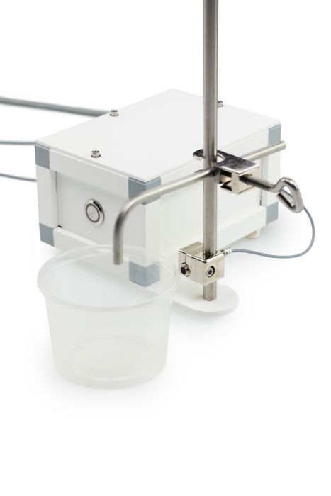 If done manually, media will flow from the preparator to the dispensing unit where an electric pince-valve of the control box keeps the dispensing line closed. As soon as a container is placed before the optical sensor, the container will be filled with the desired media volume. The moment a second container is presented, an equal volume of the medium will flow out of the dispensing unit. Some operators prefer, however, an even more manual method. For those, we supply a foot pedal to activate filling by footswitch.