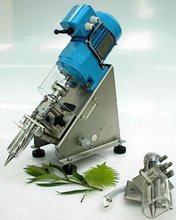 For safety reasons, the rolls are surrounded by a plexiglass part with an inlet port that simultaneously serves as splash protection. smooth roller system for thin leaves. A safety coupling between the rolls and the motor prevents damaging the device when using unsuitable materials.
